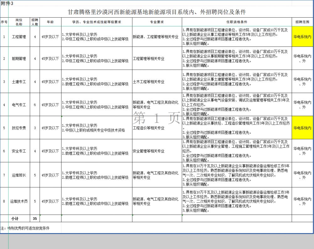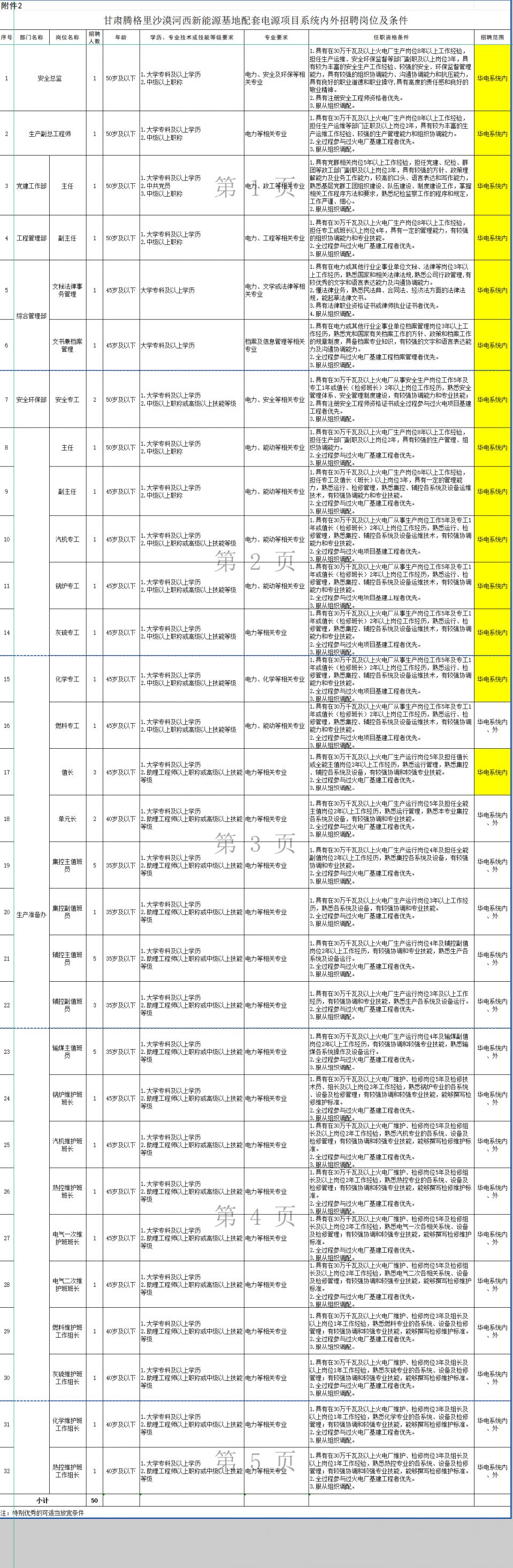 附件3:甘肃腾格里沙漠河西新能源基地新能源项目系统内外招聘岗位及条件.xls