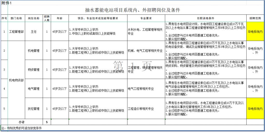 附件1:抽水蓄能电站项目系统内外招聘岗位及条件.xls