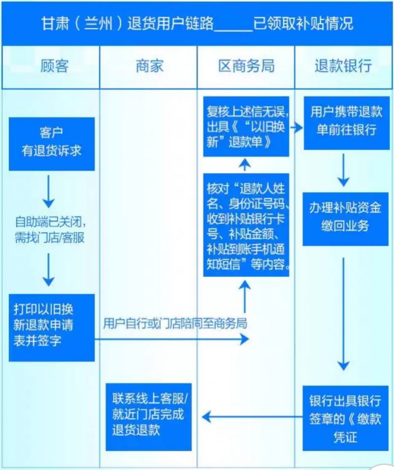 因甘肃先付后补的活动流程限制,客户退货可能涉及政府已经发方补贴,此情况需要客户至报销银行-国债窗口退回补贴金额后再办理,企业不可直接操作退款,故兰州大区线上订单退货自助入口关闭,均需要联系客服帮客户办理。